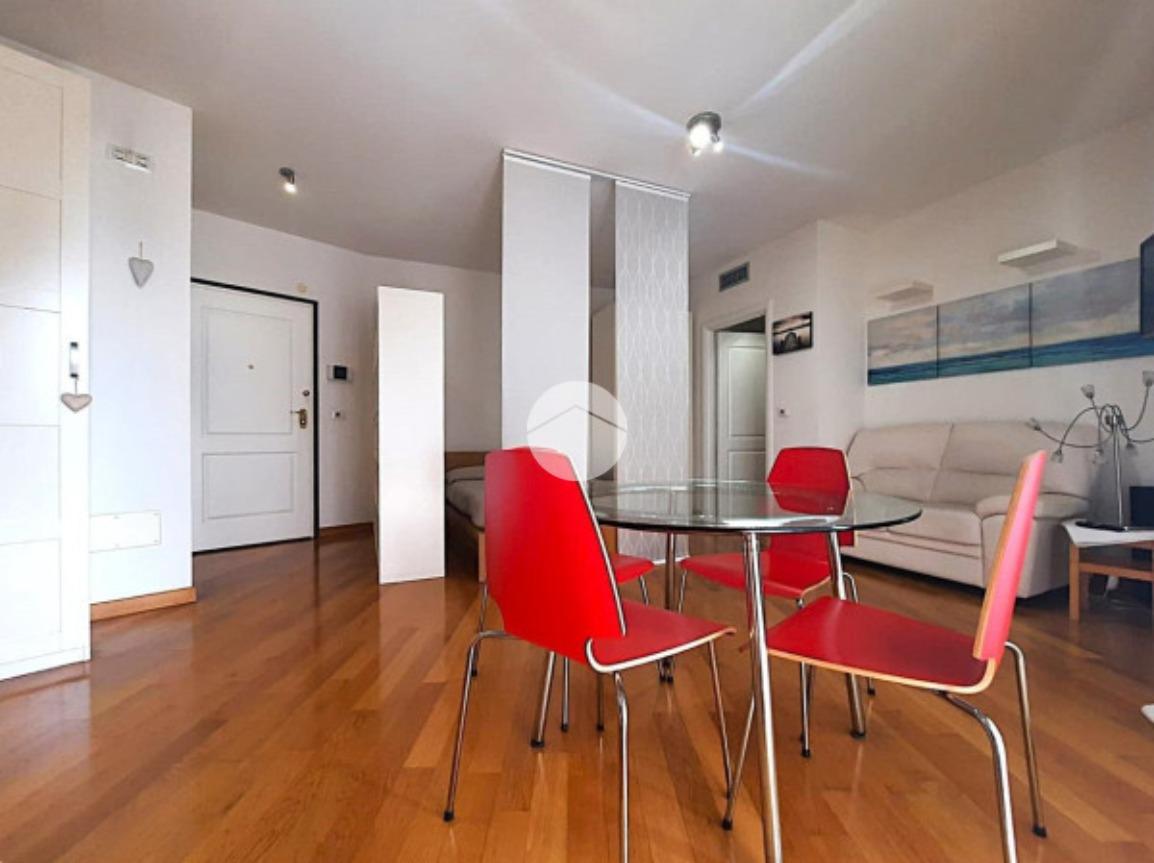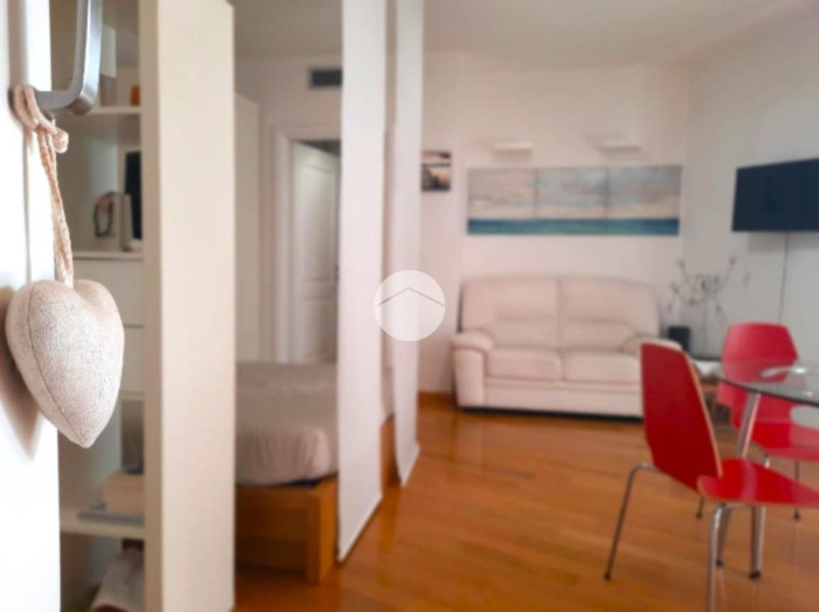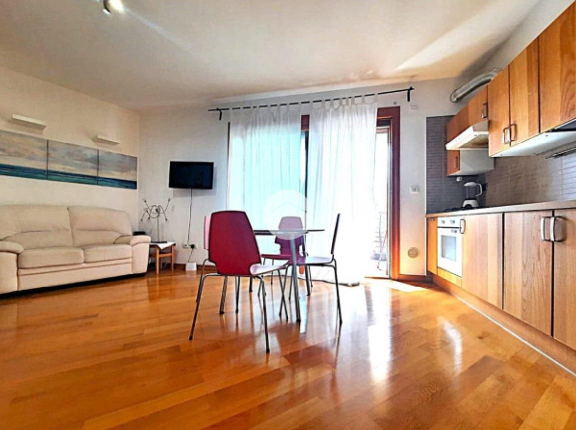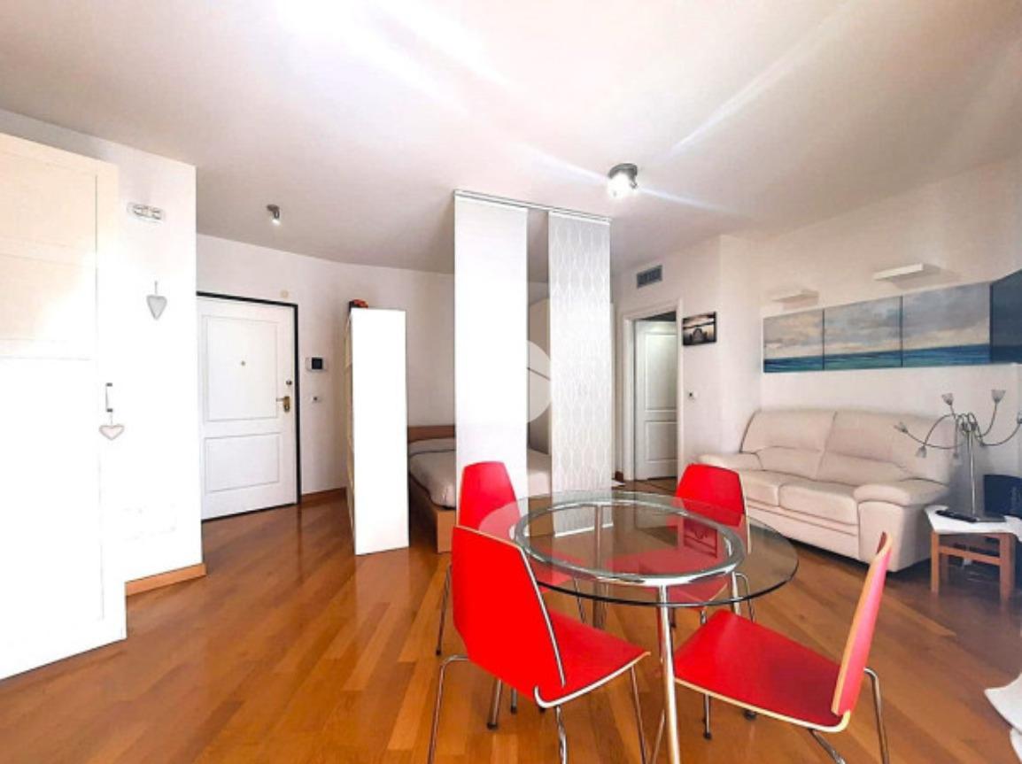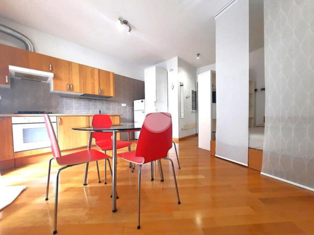 L’ appartamento, comodamente raggiungibile con l’ascensore condominiale, ha una zona giorno/notte open space con angolo cottura e, tramite disimpegno, si giunge al servizio finestrato completo di vasca idromassaggio.