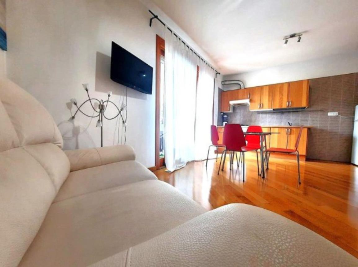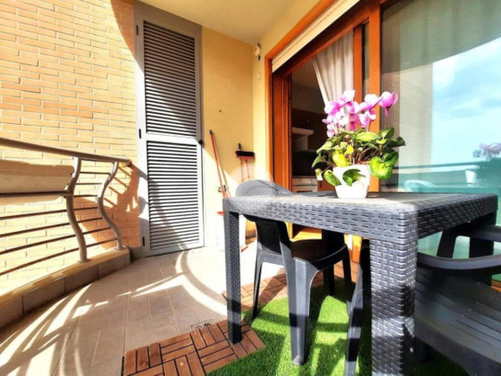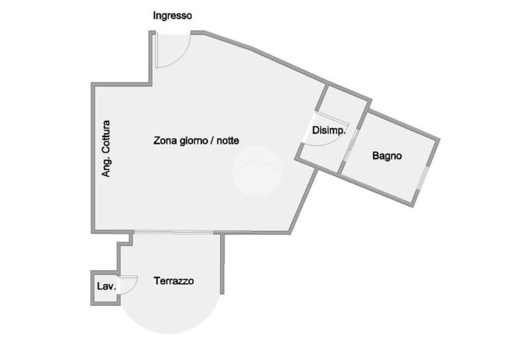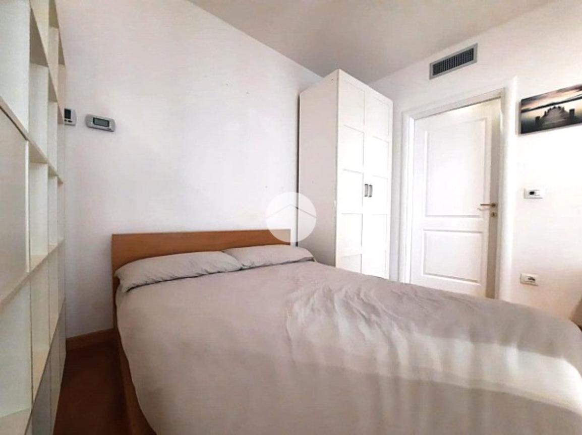 L’ appartamento, comodamente raggiungibile con l’ascensore condominiale, ha una zona giorno/notte open space con angolo cottura e, tramite disimpegno, si giunge al servizio finestrato completo di vasca idromassaggio.