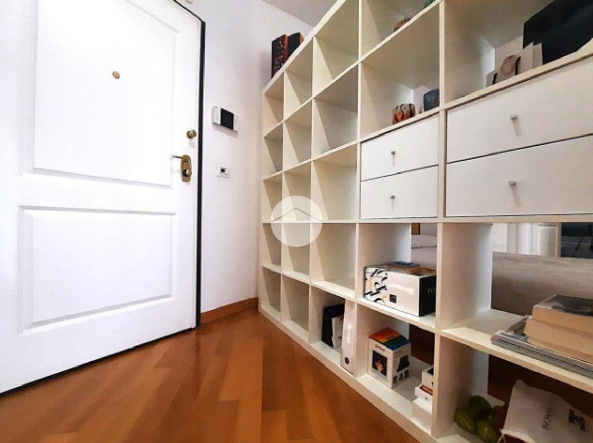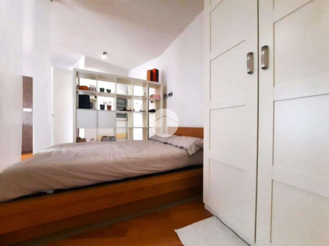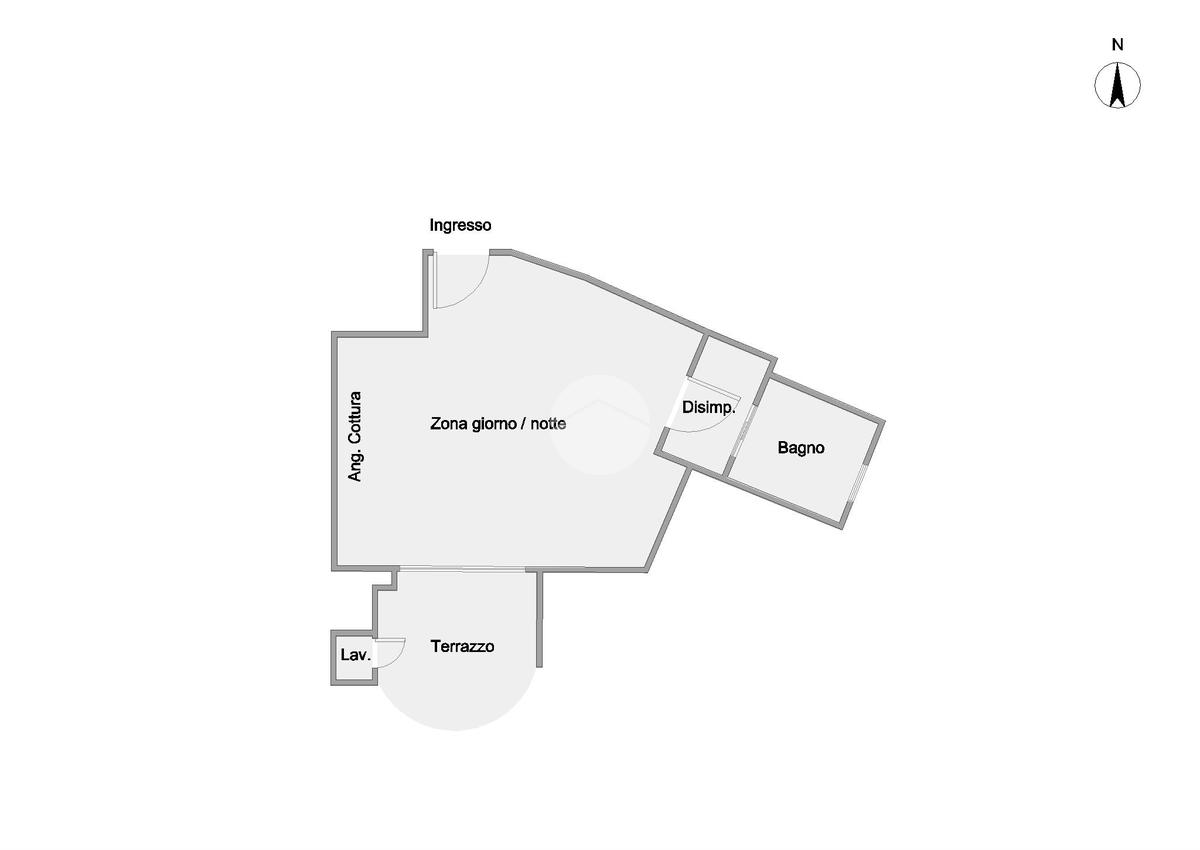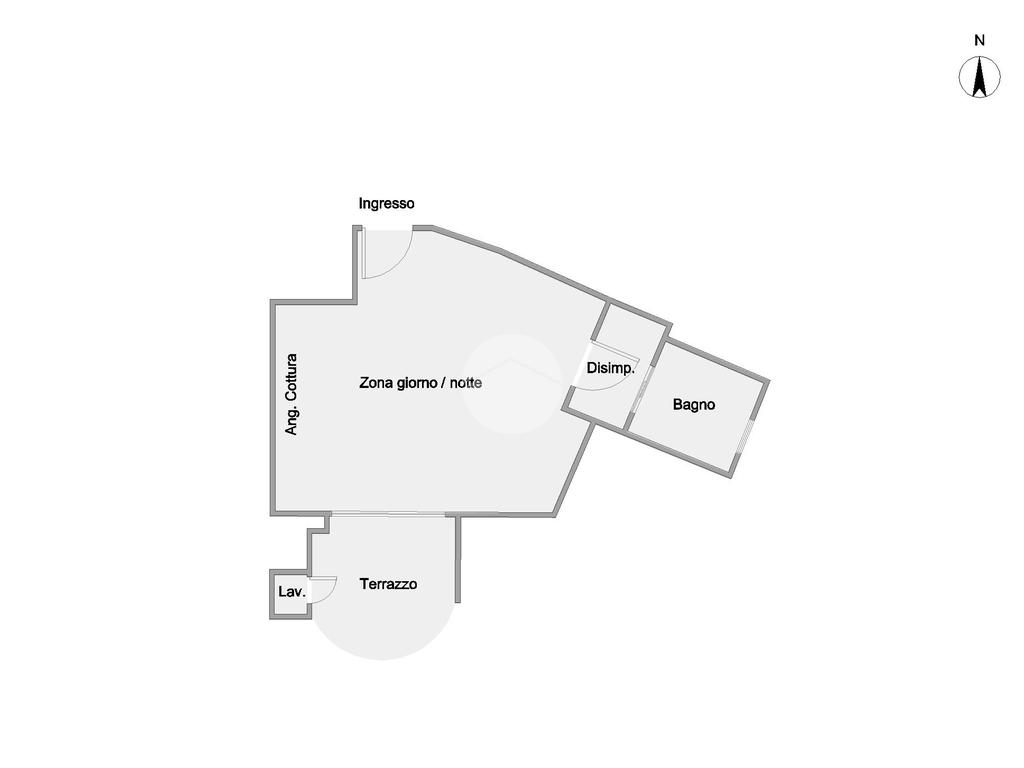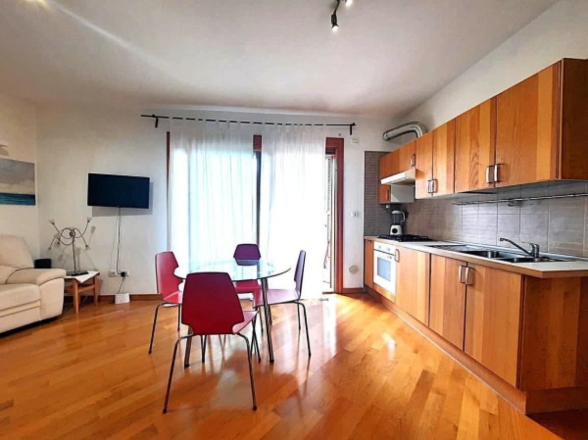 L’ appartamento, comodamente raggiungibile con l’ascensore condominiale, ha una zona giorno/notte open space con angolo cottura e, tramite disimpegno, si giunge al servizio finestrato completo di vasca idromassaggio.